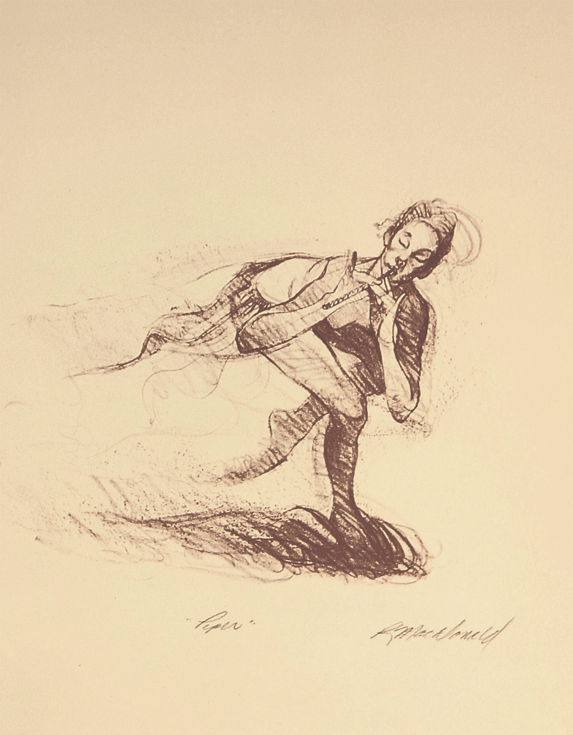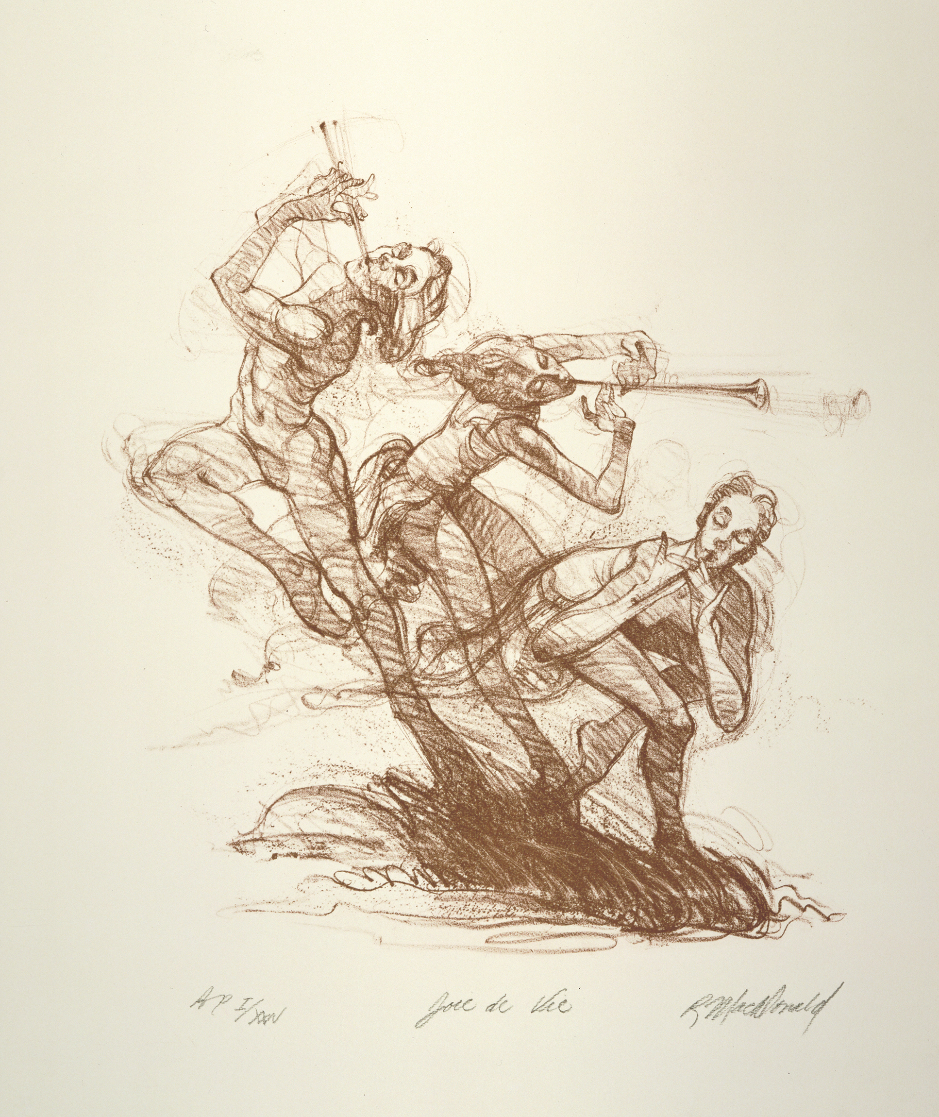 Lithography is a historic, hand-made process for recreating images by using oil-based inks on the surface of a heavy stone, which is then applied to paper. The greatest modern masters of the twentieth century used this process to create valuable images. Richard MacDonald has explored this time-honored method and created a limited number of beautiful works.
