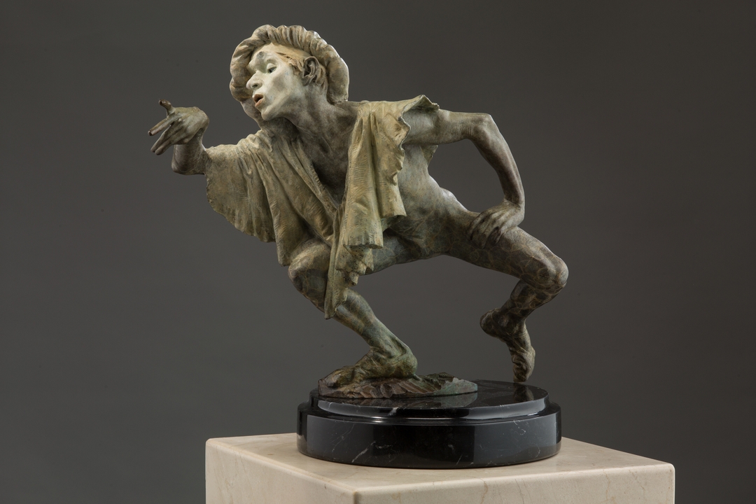 Richard MacDonald’s Mime series focuses on an ancient and universal art form: the masked or painted character who communicates only through gesture. The expressive qualities of the Mime combine the agility of a dancer, the subtle perceptions of the actor, the gentle humor of the clown, and gave Richard MacDonald a way to represent the role playing nature of human beings.